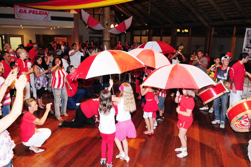 O grande momento da festa ficou por conta da Banda Guarda Popular, que levantou o público presente entooando os cânticos de jogo após a janta. Liderados por crianças portando guarda-chuvas nas cores vermelha e branca, os integrantes da Popular adentraram ao salão cantando a consagrada música 'Camisa Vermelha', que teve no coro do público a certeza da união colorada. Paulo Lattuada concluiu explicando a importância do encontro. "O evento visa a integração de sócios e torcedores para mantermos a marca ultrapassada de 100 mil sócios e projetar a chegada aos 120 mil. Devemos agradecer a todos os setores do clube pelo apoio", creditou.