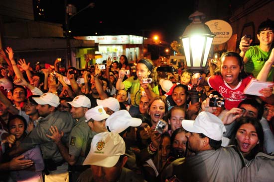 Torcedores se aglomeraram em frente ao hotel colorado, em Rivera