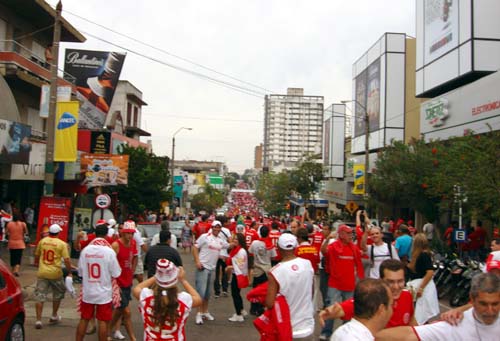 Todo o trajeto de cerca de 15 minutos da saída do hotel, ainda em Livramento, até a entrada em Rivera e no Uruguai até o estádio Atílio Paiva foi acompanhado por milhares de colorados, que deixaram as ruas das duas cidades fronteiriças pintadas de vermelho. Quem não conseguiu um dos 26 mil ingressos para a partida não arrefeceu e foi para as ruas para abanar, tentar uma foto ou mesmo ver o ônibus que passava por alguns instantes em frente das suas casas.