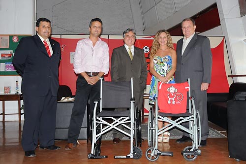 O Interagir recebeu na tarde desta terça-feira uma doação realizada pelo gabinete do vereador Nelcir Tessaro, quem esteve no Ginásio Gigantinho, casa do Interagir, para entregar pessoalmente duas cadeiras de rodas ao presidente do Inter, Vitorio Piffero, e à diretora de esportes amadores e projetos sociais do clube, Constance Piffero. Também participaram da entrega o secretário-geral colorado, Alexandre Mussoi Moreira, e o vice-presidente de esportes amadores, Roberto Melo.