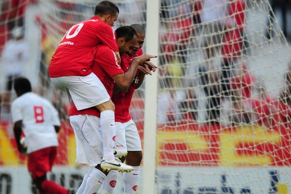 Alecsandro (C) imitou um coelho na comemoração do primeiro gol do Inter