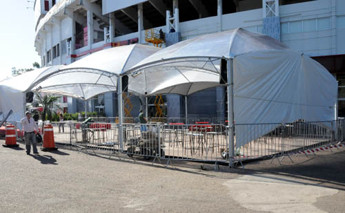A frente do Museu contará com um espaçoso ‘lounge’, com sofás, poltronas, estruturas cobertas com lonas, em caso de chuva, e televisores para receber o público neste grande dia.