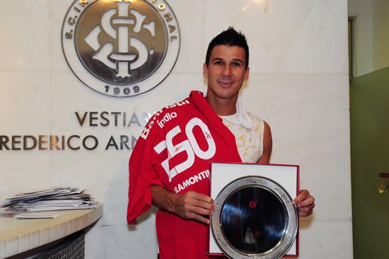 O experiente zagueiro deve fazer sua 254ª partida pelo Inter nesta quarta-feira. No último domingo, após o jogo contra o Universidade, Índio foi homenageado pelo Clube com uma camisa que tinha o número 250 gravado às costas, numa referência à marca que o deixa como o jogador do atual grupo que mais vezes atuou. Além da camisa, Índio também ganhou um prato de metal assinado pelo presidente Vitório Piffero. O próximo objetivo é ser o zagueiro que mais gols marcou pelo Inter em toda a história. No momento, está empatado com Figueroa, ídolo da década de 70, ambos com 26 gols. “Quero fazer mais um gol para entrar de vez na história. É um motivo de orgulho estar aqui, todo o atleta sonha em jogar pelo Inter. Quero dobrar esse número de jogos”, brinca o campeão da Libertadores e do Mundial Fifa em 2006.