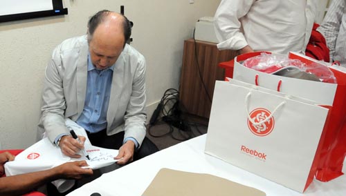 Ao final do seminário, o ídolo colorado distribuiu autógrafos e posou para fotos
