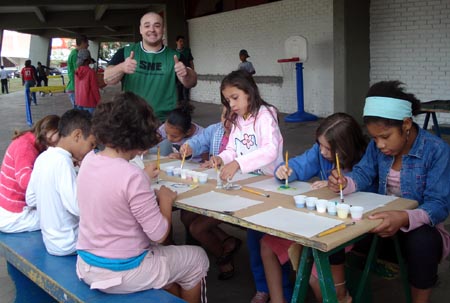 O Programa Interagir recebeu no último sábado (17/04) o ônibus 'Brincalhão' da Secretaria Municipal de Esportes, Recreação e Lazer (SME). A garotada aproveitou, além de participar das oficinas de Hapkido (arte marcial) e Hóquei, oferecidas pelo projeto colorado.