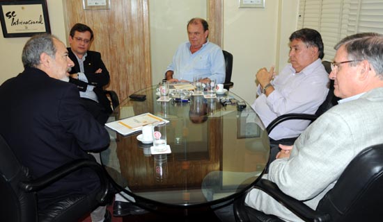 Presidente Vitorio Piffero (centro) recebeu os visitantes no Beira-Rio