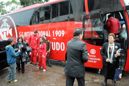 Depois de almoçarem em uma churrascaria no Parque Harmonia, os cerca de 30 convidados vieram estádio colorado no ônibus ‘Campeão de Tudo’, veículo oficial da delegação do Inter. Muitas fotos e admiração predominaram na chegada do pessoal, que foi levado pelos condutores internos do Visita até a sala do Conselho Deliberativo. Lá o público assistiu a um vídeo institucional, o qual resumia a história centenária colorada.