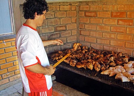 Na sequência, os participantes puderam saborear um delicioso galeto (foto ao lado) com acompanhamentos. A comida foi assada pelo vice-cônsul de Joinville Gilmar de Lima e pelo representante colorado Oscar Castro. O Restaurante Tropical, do representante Evandro Desordi, preparou as saladas, massa e acompanhamentos.