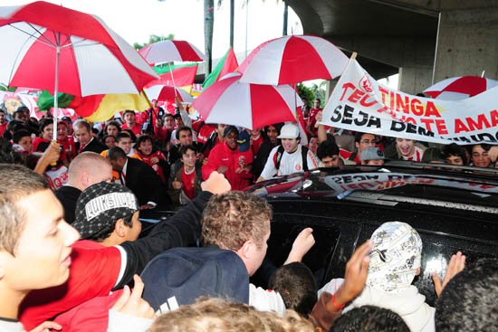 Centenas de torcedores fizeram uma grande festa no Aeroporto Internacional Salgado Filho para receber o volante Tinga, na tarde desta quarta-feira. De volta ao Internacional depois de quatro anos defendendo o Borrusia Dortmund, da Alemanha, o jogador foi para os braços dos colorados que cantavam desde o início da tarde, à espera do ídolo que brilhou na Libertadores de 2006.