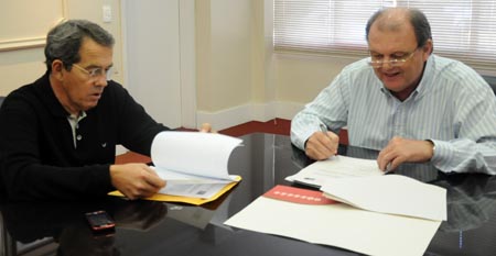 Vitorio Piffero (D) assina a parceria ao lado de José Edgar Meurer