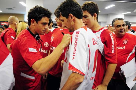 Durante o voo até a capital paulista, a delegação colorada teve a companhia do campeão mundial e olímpico dos 50 metros livres Cesar Cielo, maior nome da história da natação brasileira. Apesar da longa duração, o vôo foi tranqüilo e praticamente sem turbulências. Os jogadores puderam descansar bastante depois do treino forte realizado na manhã deste sábado, no Beira-Rio.