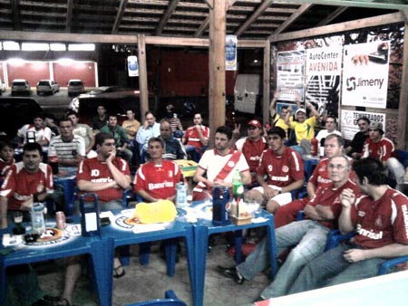 Pessoal ligado na televisão para torcer pelo Inter contra o Banfield