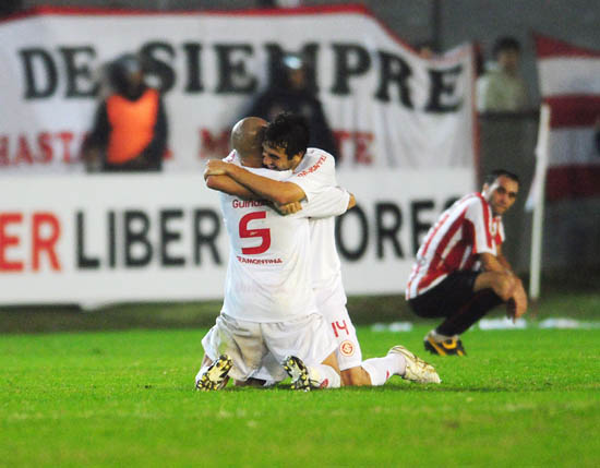 Para comemorar o gol Giuliano se atirou no gramado, como se não acreditasse Em questão de segundos Alecsandro e Bolívar já se jogavam sobre ele para festejar. O banco do Inter invadiu o gramado, todos se abraçando. E Walter correu para o centro do gramado para impedir que o Estudiantes saísse com rapidez com a bola. Levou o amarelo por isso. Pouco importava! A classificação estava na mão.