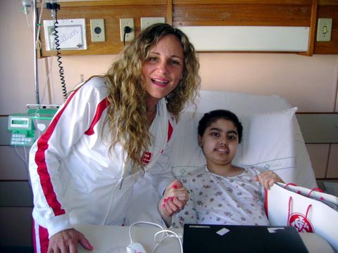 Constance Piffero (D) foi ao Hospital de Clínicas entregar os kits do Internacional