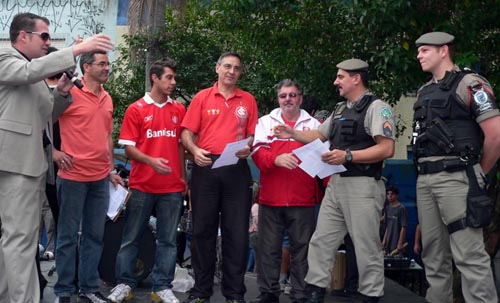 Representantes da Brigada Militar agradecem ao colorados de Canoas