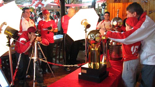 Torcedores puderam tirar fotos com as taças das grandes conquistas do Inter