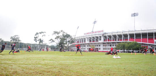 O quarto dia da intertemporada começou em alto ritmo no Beira-Rio. A comissão técnica montou um circuito no campo suplementar, com estações de trabalho que focavam diferentes exercícios. O frio intenso, com temperatura girando na casa dos 8°C, só foi menos sentido graças aos saltos e corridas que os jogadores tiveram que executar por cerca de uma hora. Após a atividade, o grupo foi almoçar no hotel, onde permanecerá concentrado até o treino da tarde. Será assim durante toda a semana.