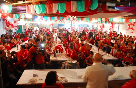 Nem o frio, tampouco a chuva, espantaram os torcedores que acompanharam o ônibus 'Campeão de Tudo' o local do evento, que ocorreu no Salão Capela Fátima. A delegação foi recepcionada por um show de fogos e uma linda festa. Já na entrada, recebeu o carinho dos colorados e retribuiu com fotos e autógrafos tiradas com os ex-jogadores e ídolos eternos Manga, Claudiomiro, Milton Vergara e Elton.