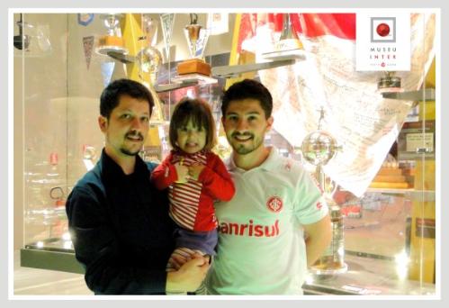 A filha Aimée se divertiu com as esculturas dos ex-jogadores Tesourinha e Carlitos e mostrou ser colorada desde pequena: “gosto do Taison”. Colorado fanático, o cineasta conta que a traz para assistir aos jogos no Beira-Rio e que ela adora.