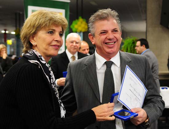 Pedro Affatato recebe a medalha e o certificado das mãos da governadora do Estado