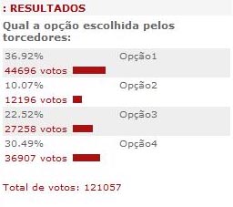 A convocação foi feita e a massa colorada participou em peso. O Internacional e a Reebok divulgaram o resultado da eleição do terceiro uniforme do clube na noite deste domingo, na loja InterSport, no Estádio Beira-Rio. Com 44.696 mil votos, mais de 36% da preferência, a opção nº 1 (foto ao lado) foi a camisa escolhida pelos torcedores colorados. No total, foram impressionantes 121.057 cliques para decidir a grande vencedora.