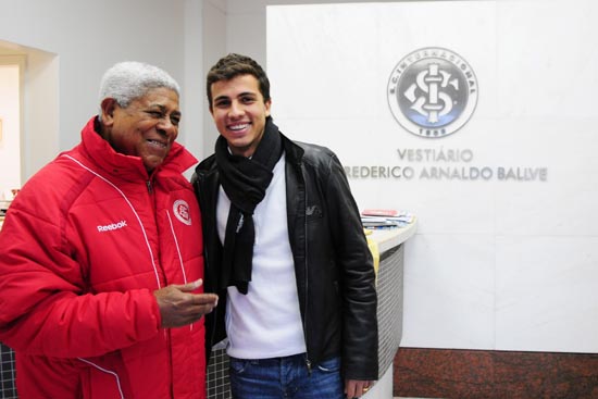 O Internacional recebeu uma visita ilustre nesta sexta-feira. O atacante Nilmar, ídolo colorado, agora no Villarreal, da Espanha, se encontrou com seus ex-companheiros de clube no vestiário do time profissional, no Beira-Rio. O jogador está de férias no Brasil.