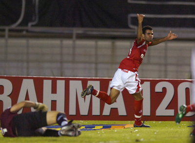 Sandro sai para comemorar seu primeiro gol como profissional em 2008