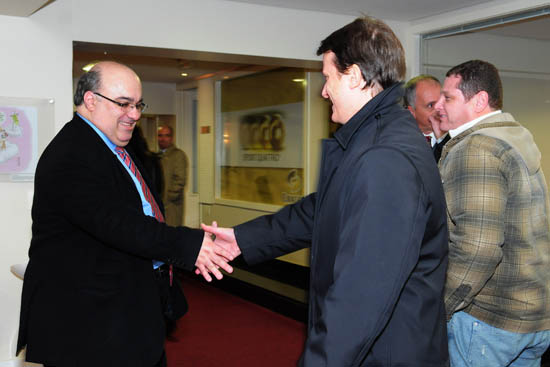 Marcelo Medeiros concede entrevista para a TV Inter observado por seu sócio Marco Antônio Bezerra