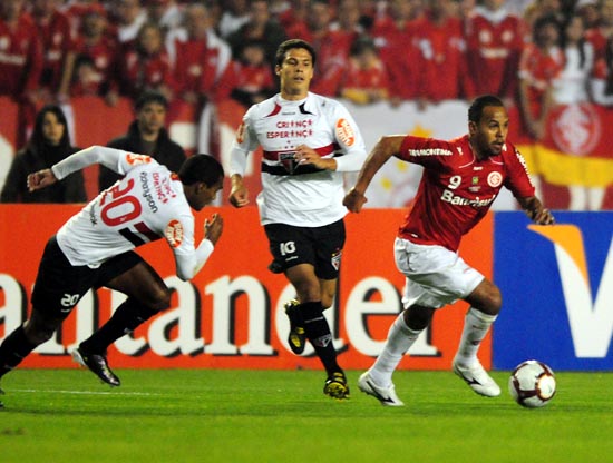 A primeira grande chance colorada foi aos 18min, com D’Alessandro cobrando uma falta frontal ao gol. A bola passou muito próxima à trave esquerda de Rogério Ceni. Aos 25min, após cobrança de escanteio fechada de D’Alessandro, a bola sobrou para Alecsandro na segunda trave, e mesmo sem ângulo, ele conseguiu chutar para defesa de Ceni. Só dava Inter! Dois minutos depois, Kleber cruzou e Taison cabeceou da marca penal. O goleiro da equipe paulista saltou e buscou a bola no canto esquerdo.