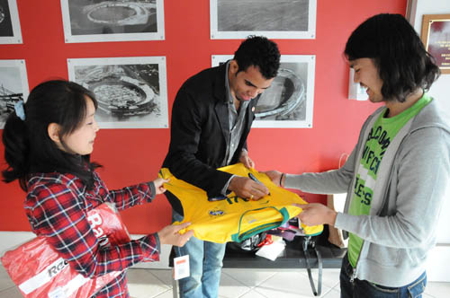 O ponto alto ficou para o esperado encontro com o ídolo Sandro. Assim que ele despontou na porta do vestiário, Yuka começou a gritar o nome do volante. Nem a barreira da língua diminuiu a interação, já que ela conversava em um misto de português e inglês Esbanjando simpatia, Sandro deu atenção especial aos fãs, que o presentearam com lembranças do Japão, entre elas um amuleto que, segundo Yuka, atrai vitórias. "Que legal! Uma vitória já conquistamos, tomara que outra seja alcançada no próximo jogo", disse Sandro, que presenteou a torcedora japonesa com uma camisa oficial do Inter.