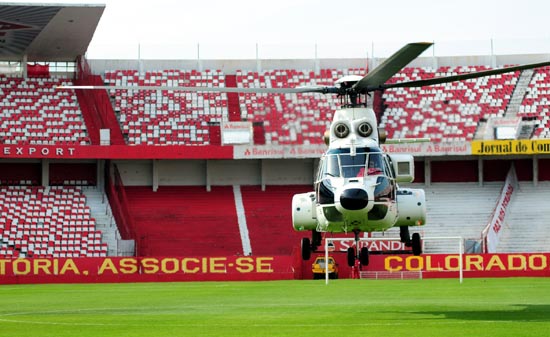 Helicóptero da FAB decola do centro do gramado do Beira-Rio