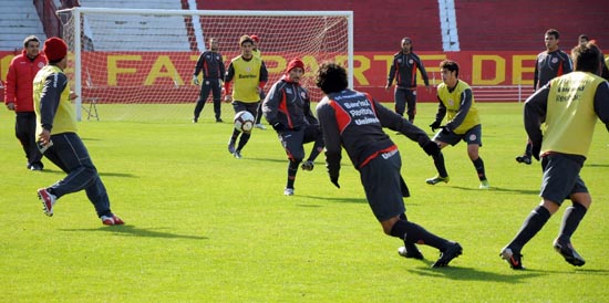 Grupo colorado treinou na manhã fria desta quarta-feira antes do embarque