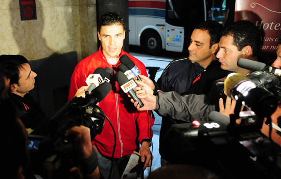 Dezenas de jornalistas aguardavam ao Inter no hall de entrada do hotel, dando uma noção da dimensão do jogo desta quinta. A Assessoria de Comunicação do Clube organizou uma entrevista coletiva com o lateral Kleber e o zagueiro Bolívar. A dupla ficou por cerca de 20 minutos falando sobre a partida decisiva. “É um jogo de detalhes, vamos ter que ser precisos para buscar a classificação. Mas todo mundo está muito focado. A equipe está em um momento muito forte”, garantiu Bolívar.