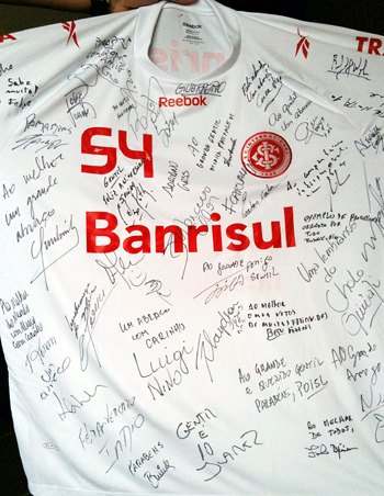 Camisa com mensagens de jogadores e membros da delegação foi entregue a Gentil