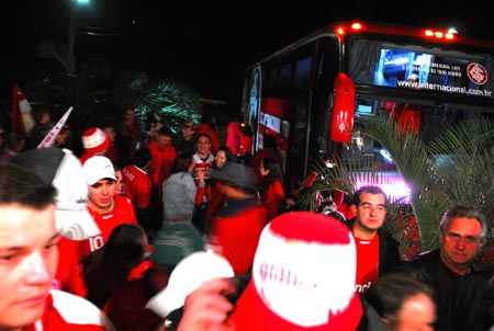Após o jantar, o vice- cônsul do consulado de Vale Real, Fernando John, transmitiu aos presentes a conversa que teve com o zagueiro Índio pelo telefone, o que entusiasmou os colorados que entoavam as músicas da torcida de apoio ao time.