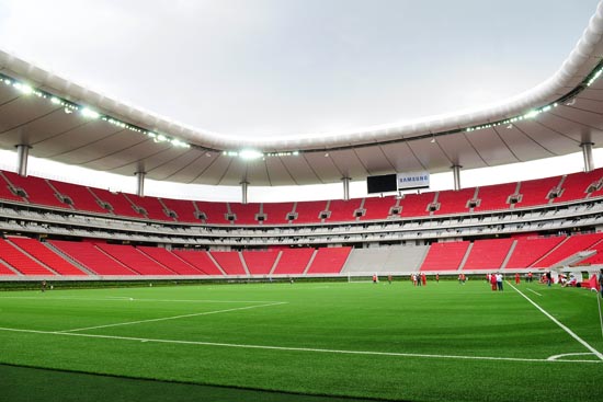 O apelido de 'volcano' surgiu de sua estrutura que se assemelha a um vulcão. Localizado longe do centro de Guadalajara (cerca de 30 minutos do hotel do Inter), o estádio possui uma enorme área de acesso. Quem vê de fora, pensa ser um estádio bem alto, mas o campo sintético, que contém borrachas, está à altura do subsolo, ou seja, é rebaixado. A previsão é de casa cheia para quarta-feira; mais de 50 mil pessoas.