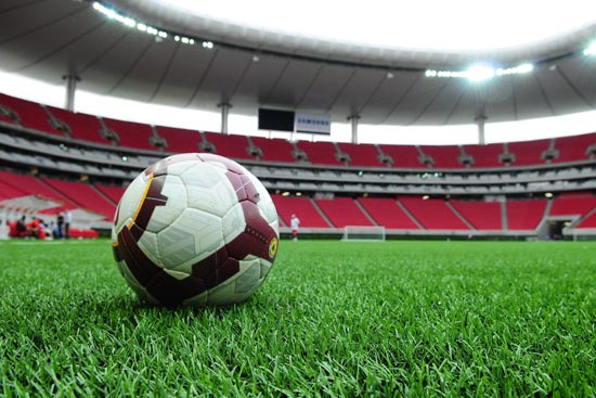 Bola da Libertadores no gramado sintético do estádio do Chivas