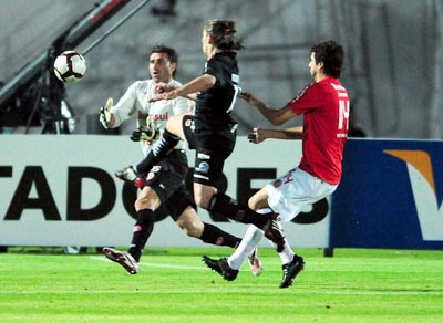 Mais de 36 mil colorados fizeram uma linda festa no Beira-Rio e empurraram o time para a segunda vitória na Libertadores. O Inter venceu por 2 a 0 e alcançou a liderança do grupo. Walter chutou e o zagueiro uruguaio Ibañes tentou cortar, mas a bola acabou entrando. Gol contra! O segundo nasceu do oportunismo do artilheiro Alecsandro, que aproveitou rebote do chute de Giuliano para dar números finais à partida.