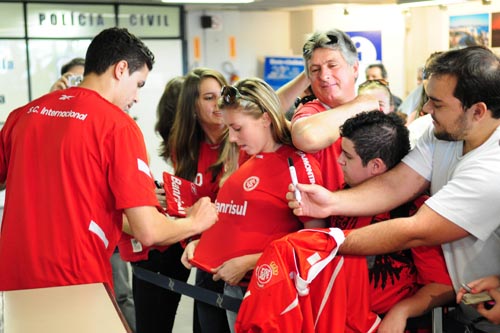 Na saída do Aeroporto Internacional Hercílio Luz, dezenas de torcedores recepcionaram a delegação colorada. Gritos dos nomes dos atletas e cânticos da torcida foram a melhor forma do contingente expressar o apoio ao Inter. Bolívar, capitão da conquista do bi da América, foi o mais badalado. O zagueiro tirou diversas fotos e distribuiu autógrafos para a galera.