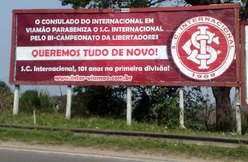 No detalhe, outdoor parabenizando o Inter pelo título continental