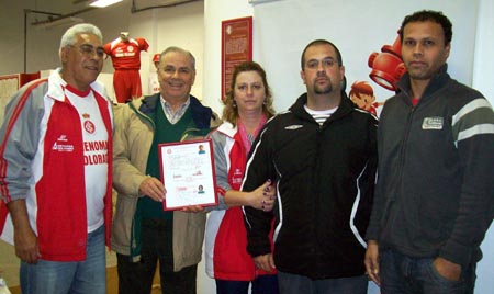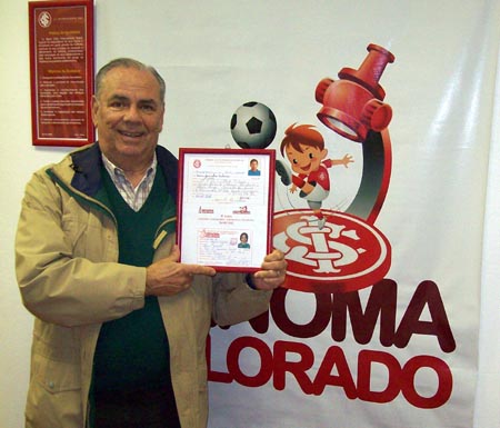 Diretor Adil Souto com o quadro alusivo à ficha de atleta nº 1 até a última realizada nesta data de aniversário