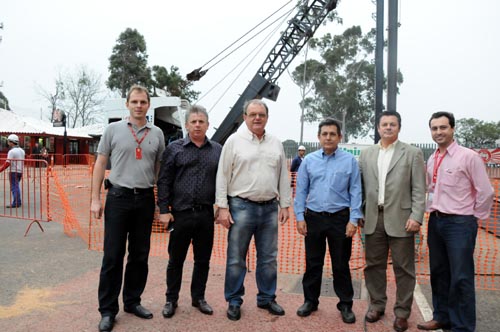 Presidente Vitorio Piffero (terceiro da esq. para a dir.) esteve vistoriando a instalação da estaca (ao fundo)