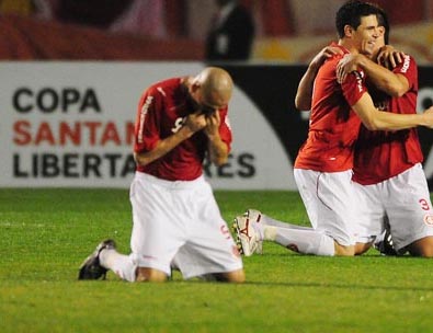 Desde a conquista do bi da América, o volante Guiñazu (na foto beijando o escudo do Clube) não atua pelo Intenacional. O jogador teve uma lesão no tonozelo e ficou de fora dos últimos quatro jogos da equipe colorada: Atlético-GO, Avaí, Botafogo e Vitória. No treinamento desta sexta-feira, o argentino participou normalmente dos trabalhos propostos por Celso Roth. Para o departamento médico do Inter, "El Cholo' está liberado para o confronto contra o Grêmio Prudente. "A parte física dele está recuperada; está à disposição do treinador", resumiu o médico Luiz Crescente.