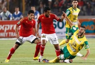 Partida entre Al Ahly (de vermelho) e J.S Kabylie pela fase de grupos do torneio
