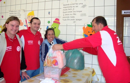 A campanha era o seguinte: quem colaborava com 1kg de alimento participava de um sorteio cujo prêmio era uma camiseta oficial do Internacional autografada. Foi uma campanha do Consulado do Internacional de Sapucaia do Sul. Os alimentos arrencadados foram divididos em três partes: ACAPASS – Casa de Passagem Vila Vargas, Fazenda Senhor Jesus e Asilo – Aconchego do Idoso no bairro Primor.