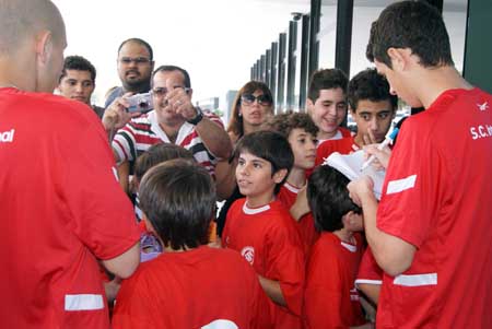 Após uma recepção calorosa na noite da última segunda-feira na capital cearense, a tarde desta terça-feira também foi alegre para o Núcleo do Genoma Colorado. Cerca de 50 alunos da escola de futebol de Fortaleza visitaram o hotel onde a delegação colorada está concentrada para a partida válida pela 28ª rodada do Brasileirão. Os garotos tiveram a oportunidade de conhecer de perto os seus ídolos, e registraram o momento com fotos e autógrafos.