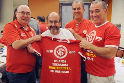 Cada parte do Brasil conta com um belo contingente de colorados. Fortaleza não é diferente. O consulado da cidade cearense organizou um belo jantar na noite desta terça-feira, em uma churrascaria, para festejar a passagem do Internacional. Mais de 200 pessoas puderam comemorar a presença do clube de coração. O vice-presidente da comunicação social do Inter, Gelson Pires, representou a diretoria colorada no evento e agradeceu à torcida pelo grande apoio dado. O relações esportivas da Reebok, fornecedora do Clube, Edu Pesce, também marcou presença no encontro.