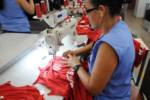 Funcionária trabalha na camisa oficial do Inter