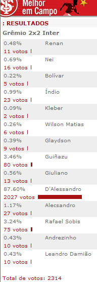 Enquete: D'Alessandro, o melhor em campo no Gre-Nal