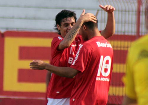 Ricardo Goulart comemora com Talles Cunha o gol da vitória do Inter